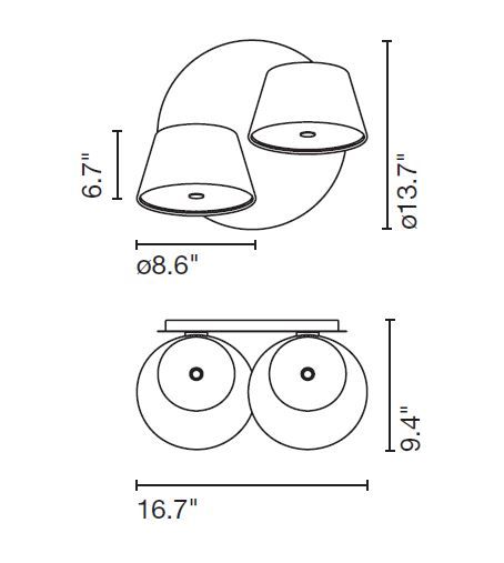 The Tam Tam is made to fit your environment, spreading light wherever you place them. The single shade fixture has an incorporated switch and is perfect as a bedside lamp, while the double shade version is great for corridors and general spaces.