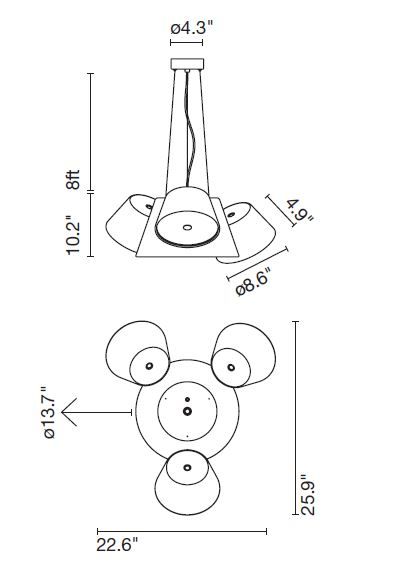 - Central shade in lacquered aluminum, to which are attached various satellite shades that can be rotated through 360º.