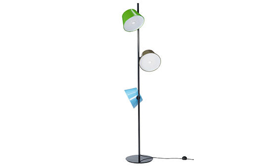 The colorful, sonorous Tam Tam, already so multifunctional, now comes in a new linear version that retains its fun, dynamic roots. The new floor models feature a central pole to which either one or three colorful, rotating lampshades are attached.