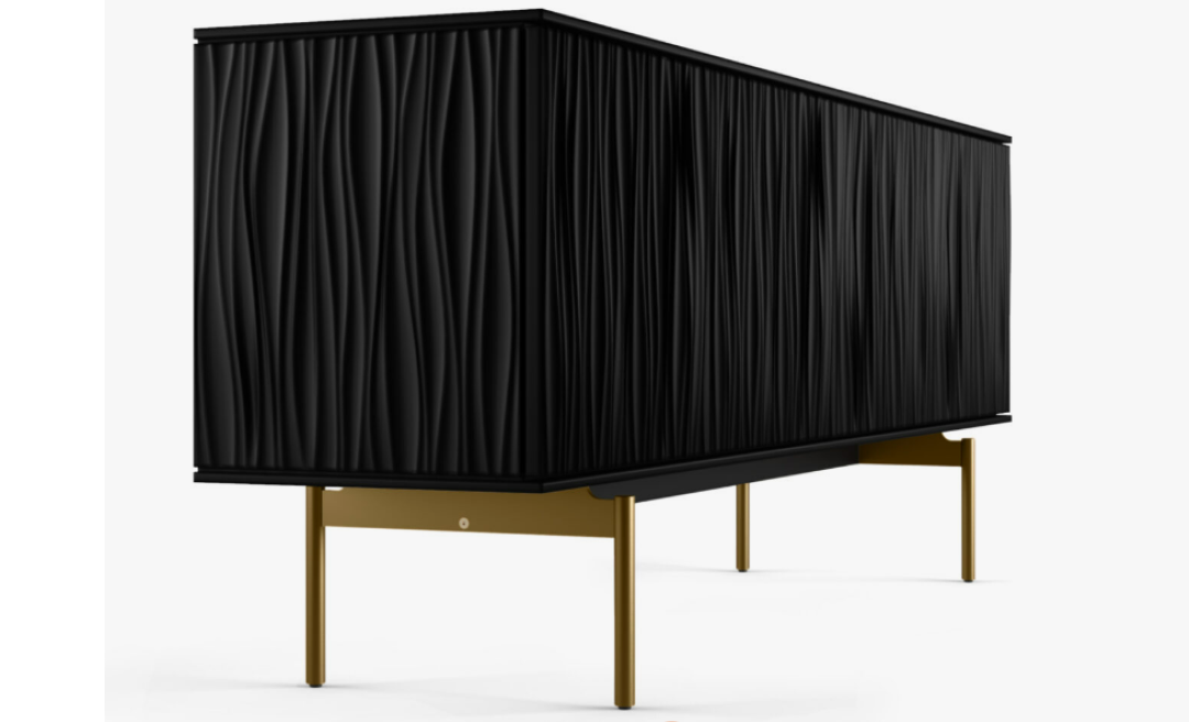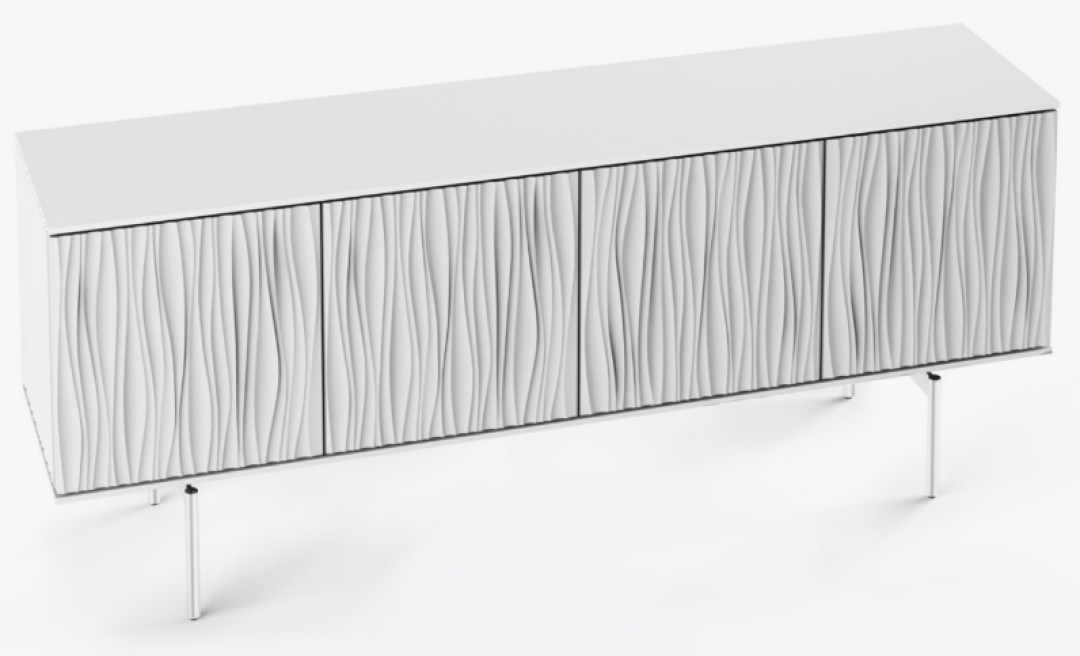Contrasting straight lines with flowing, sculpted patterns, this stunning modern console collection is certain to be a conversation starter and the focal point of any room, whether used for storage in a dining room or entryway, or in the living room as the center of home entertainment.