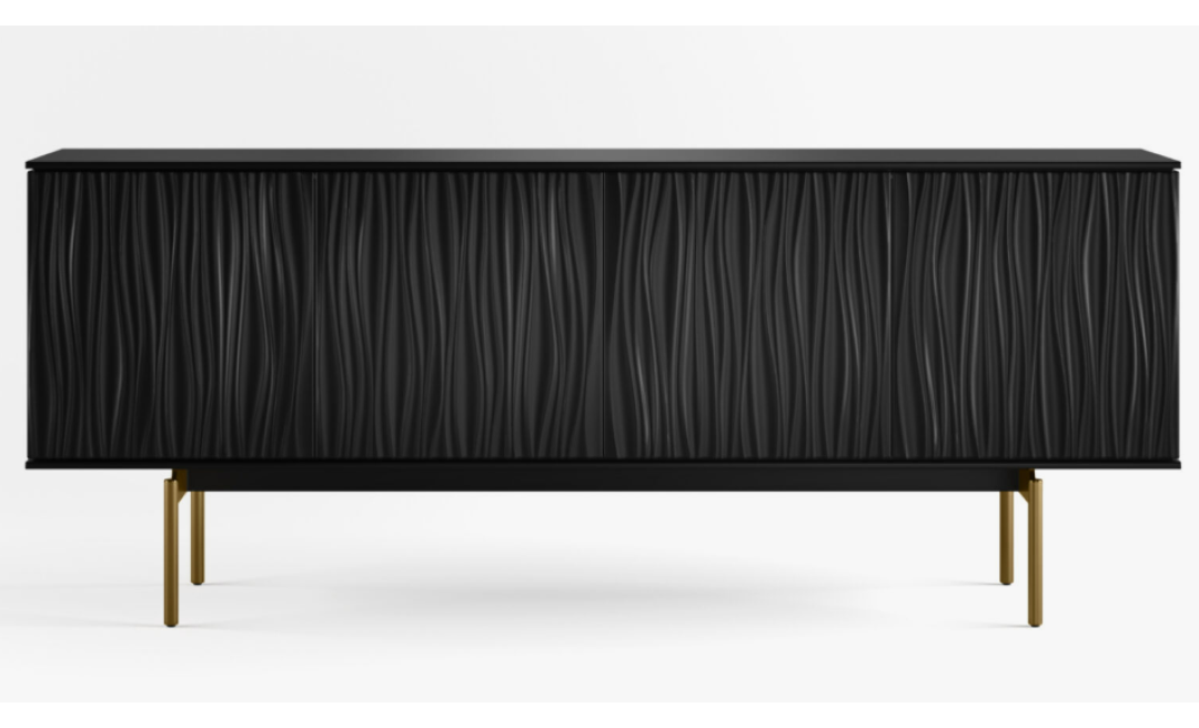 Beautifully sculpted doors create a modern and dramatic storage console that is sure to be the focal point of any room.