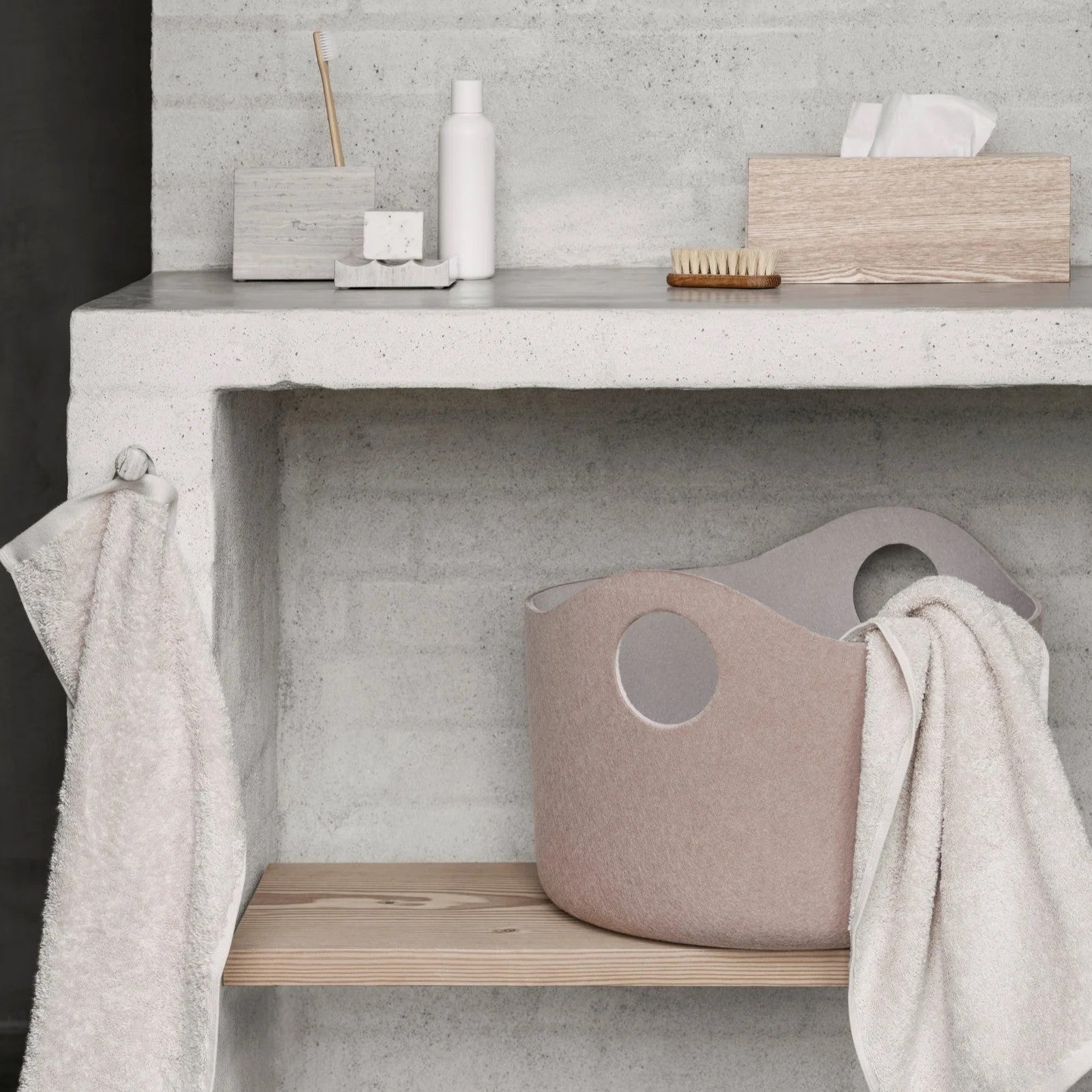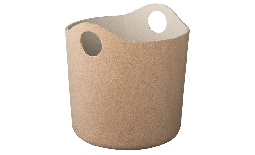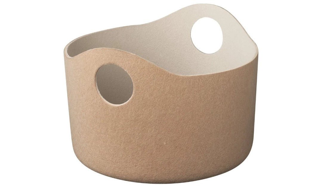 Blomus Tiggy Felt Basket With Handles is a versatile storage basket. The beauty and softness of this design can function as a waste paper basket in the office, for blanket storage in the living room, or even toy storage in a child's room. Made of soft felt, the baskets are available in multiple sizes and feature handle cutouts for easy carrying.