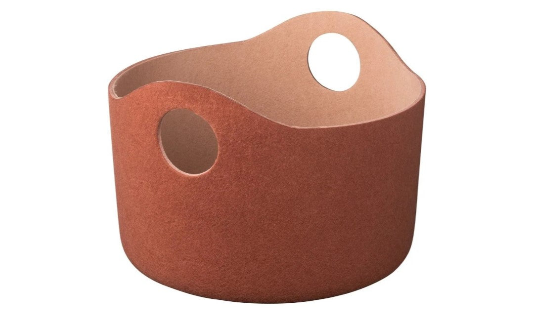 Blomus Tiggy Felt Basket With Handles is a versatile storage basket. The beauty and softness of this design can function as a waste paper basket in the office, for blanket storage in the living room, or even toy storage in a child's room. Made of soft felt, the baskets are available in multiple sizes and feature handle cutouts for easy carrying.