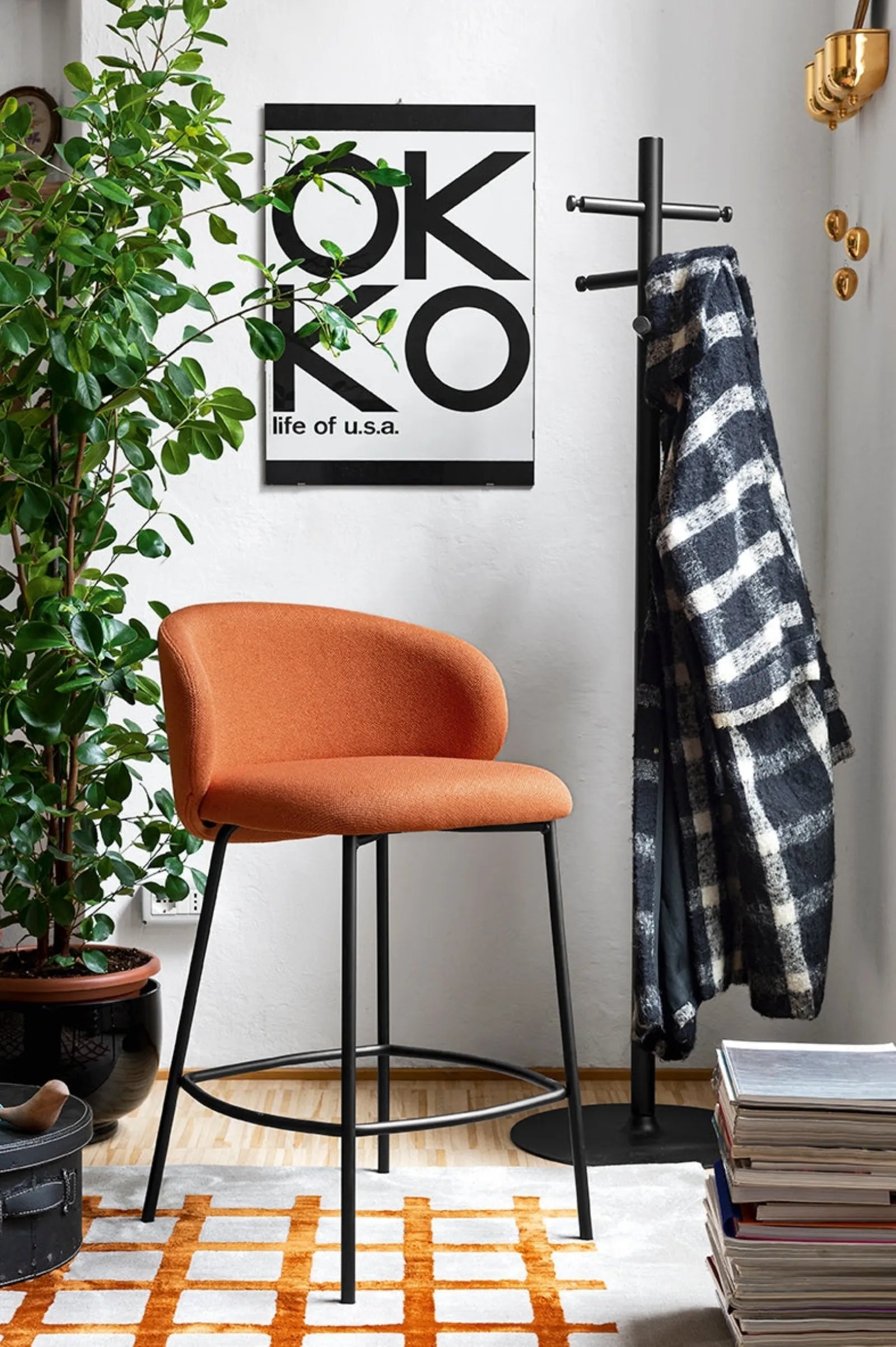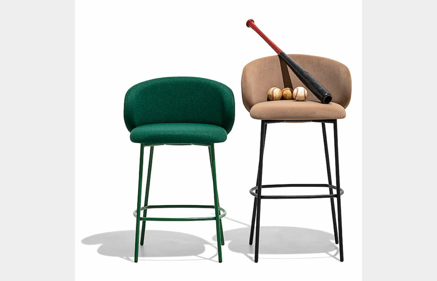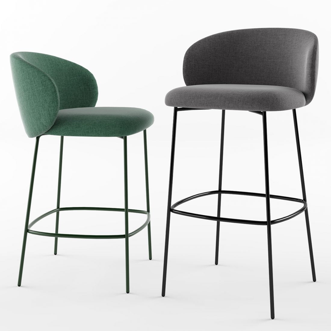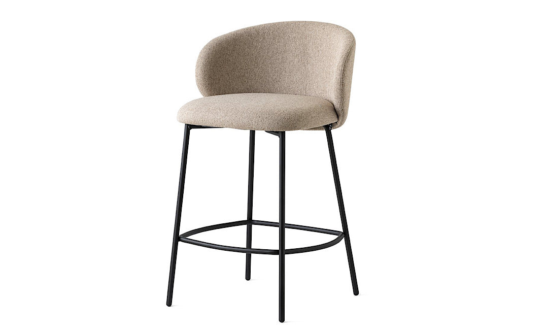 This stool features a modern aesthetic and an inviting comfortable seat set on metal legs. The wraparound seat is meant to be leant into and provides plenty of back support. The rounded yielding cushion seems to beckon you to settle in and relax.