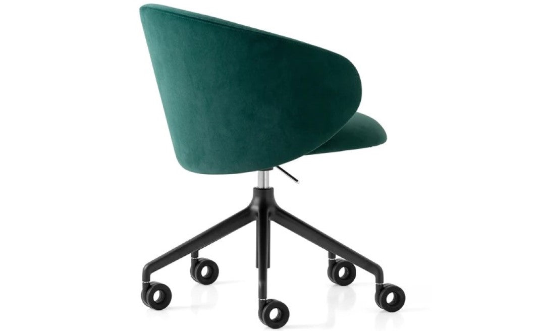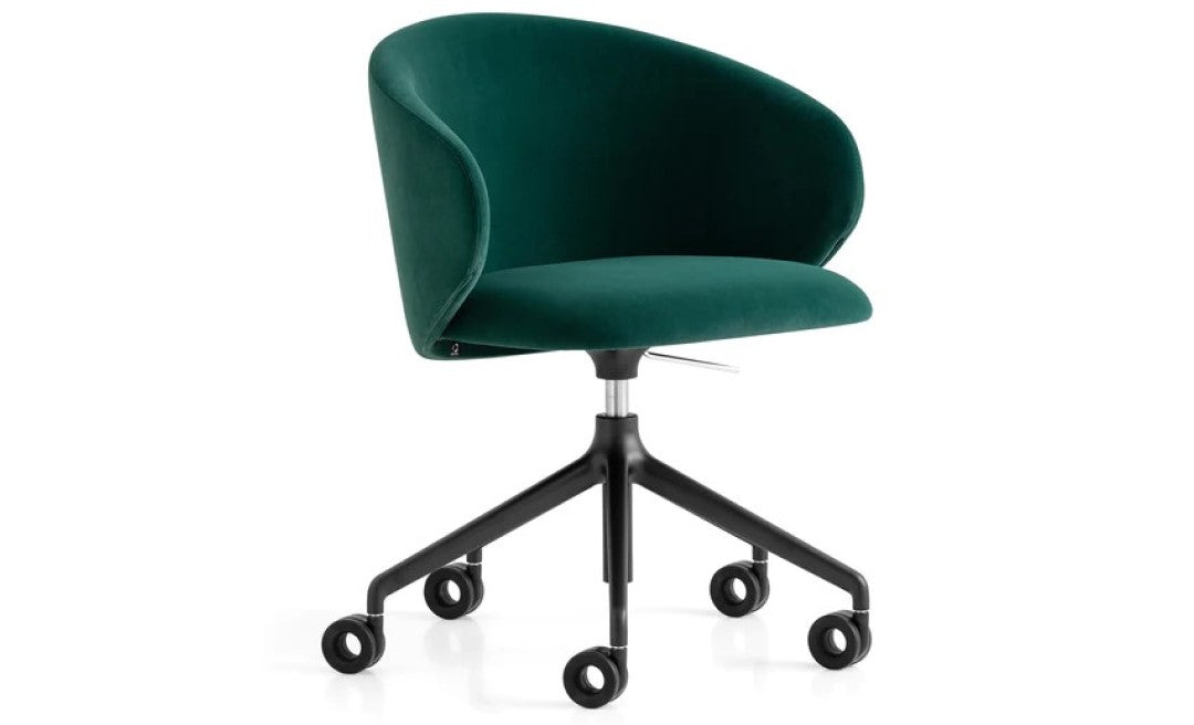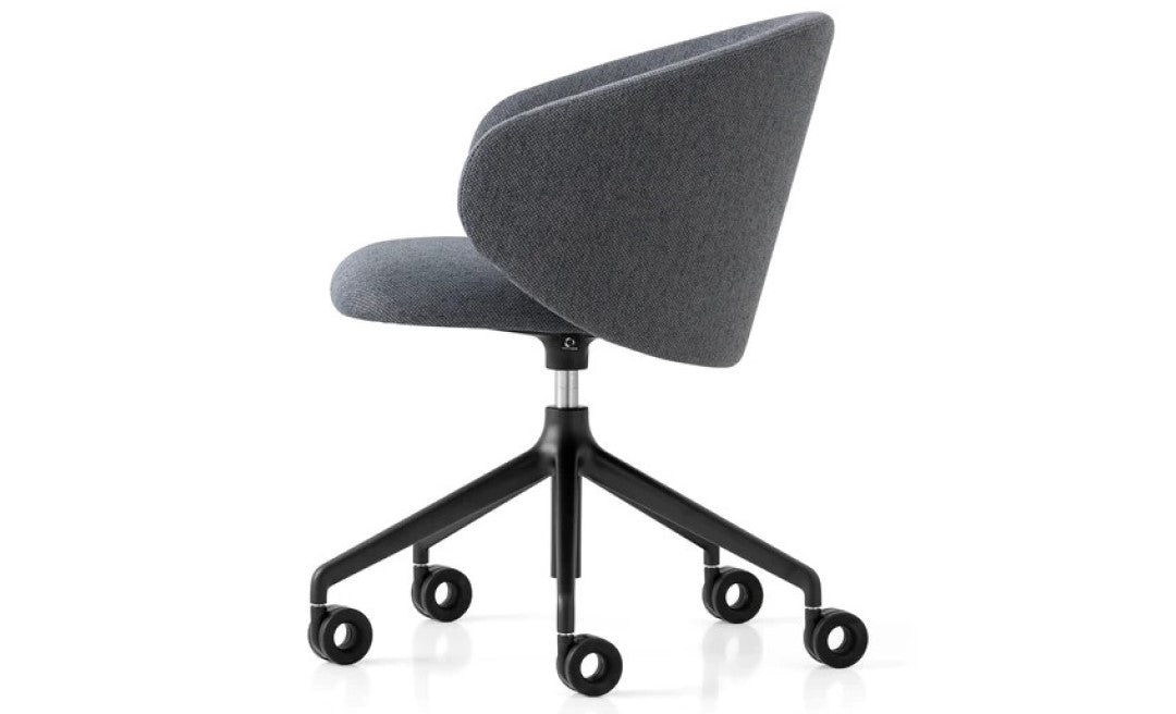 Tuka is a swivelling armchair with a spoke base in die-cast aluminium. Suitable for a meeting table or a home office. Available with a repositioning mechanism or fitted with rolling casters that swivel through 360°. The wide range of colours provides you with a panoply of alternatives for visually striking furnishing solutions.