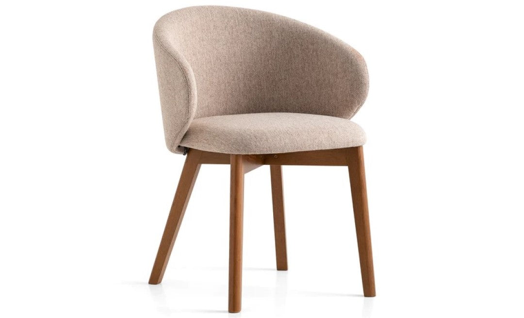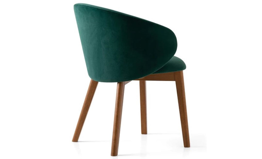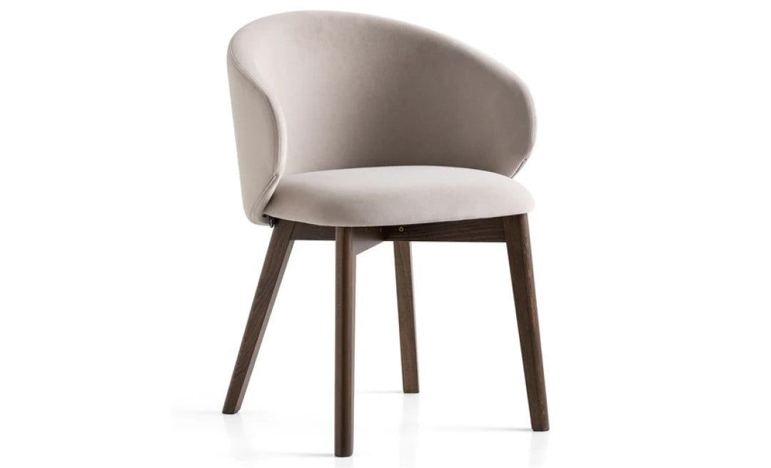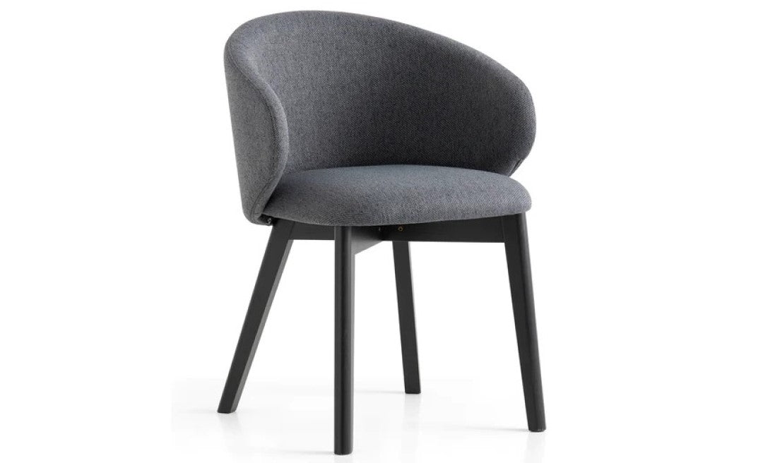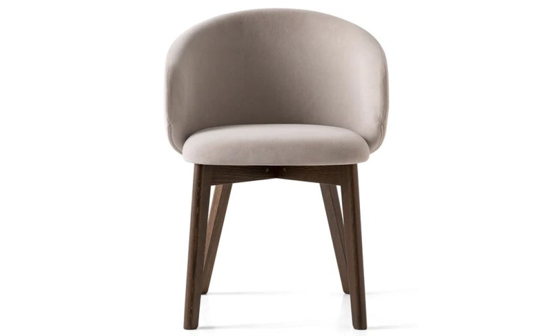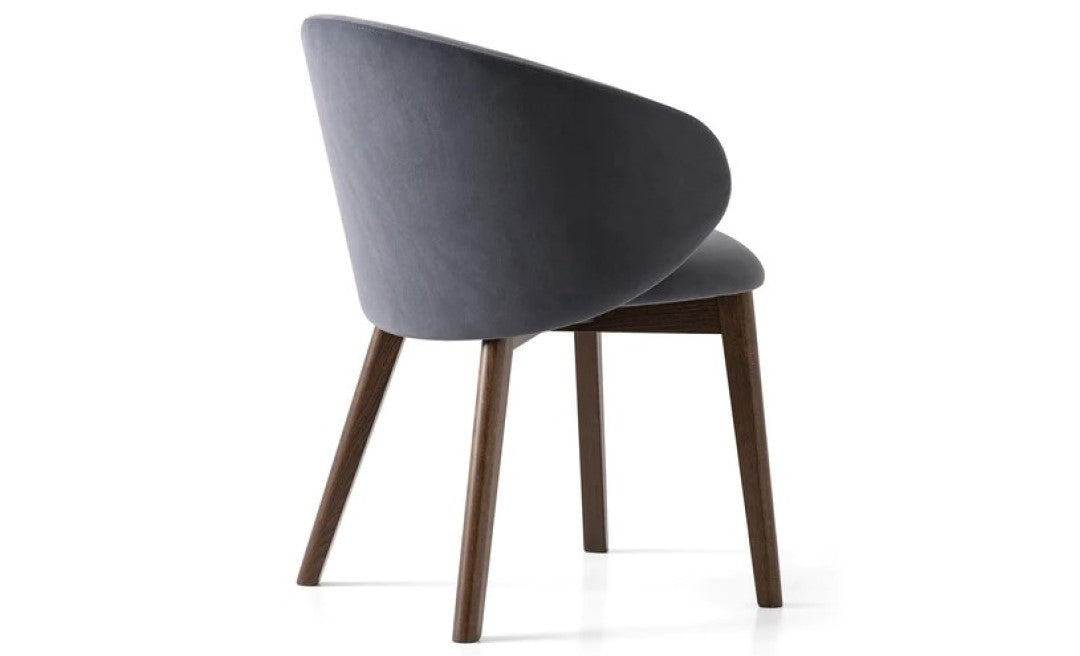 Tuka armchair with 4 wooden legs, padded seat shell with fixed upholstery and enveloping wraparound backrest.