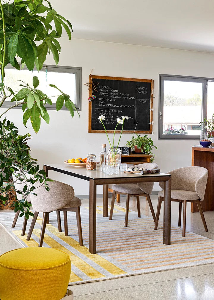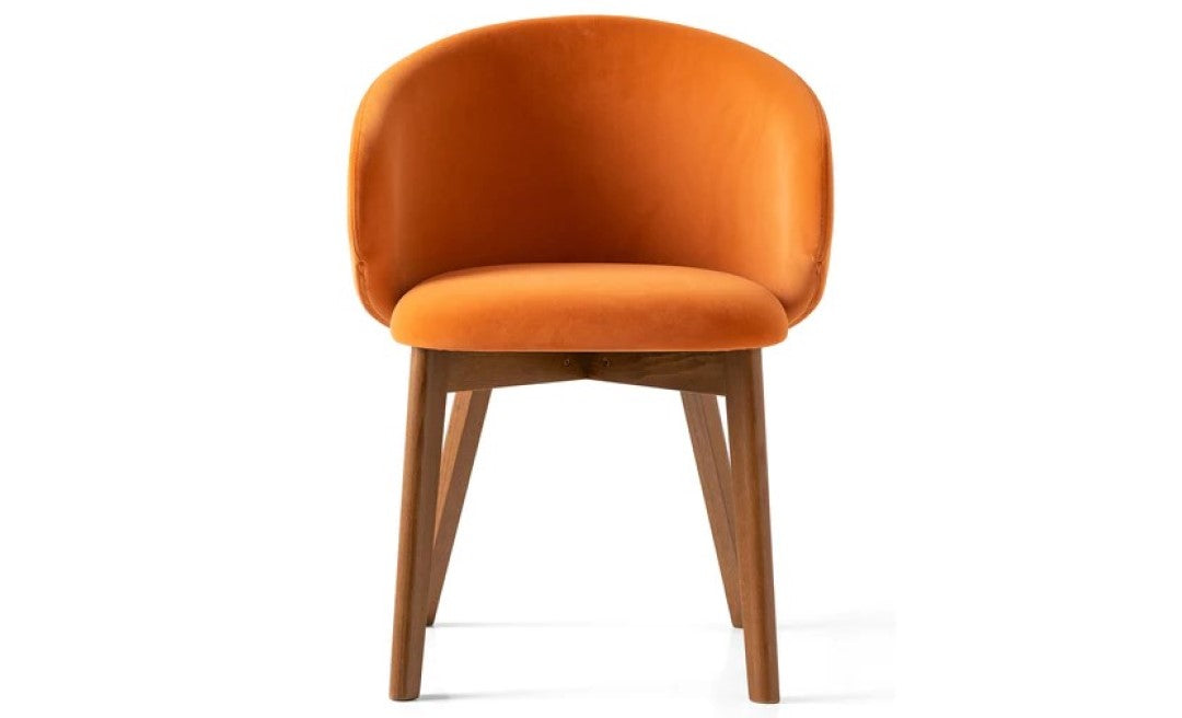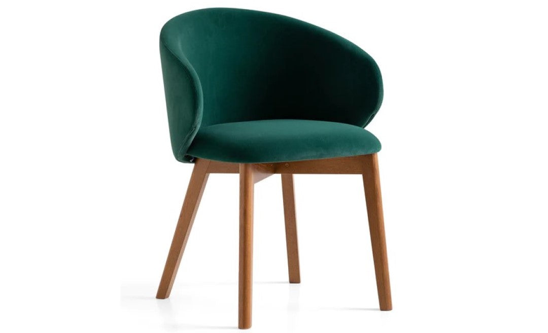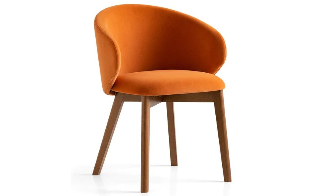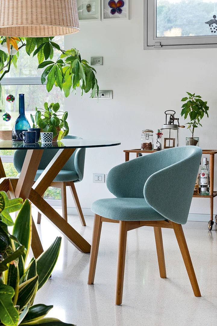 Tuka armchair with 4 wooden legs, padded seat shell with fixed upholstery and enveloping wraparound backrest.