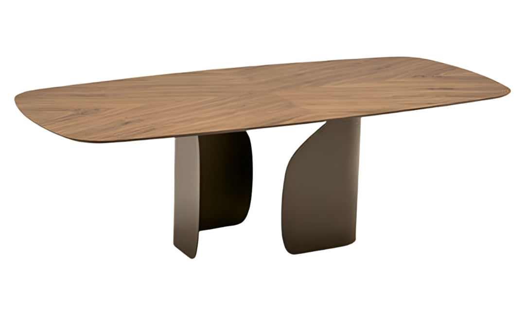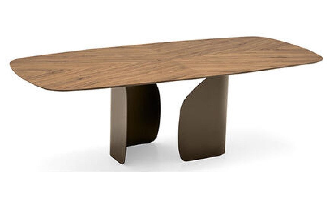 Twins is a dining table with a striking visual appeal, featuring a unique base composed of two curved, molded metal elements that create the illusion of the tabletop taking flight. With a wide range of finishes available, you can customize Twins to suit either a classic or modern aesthetic.