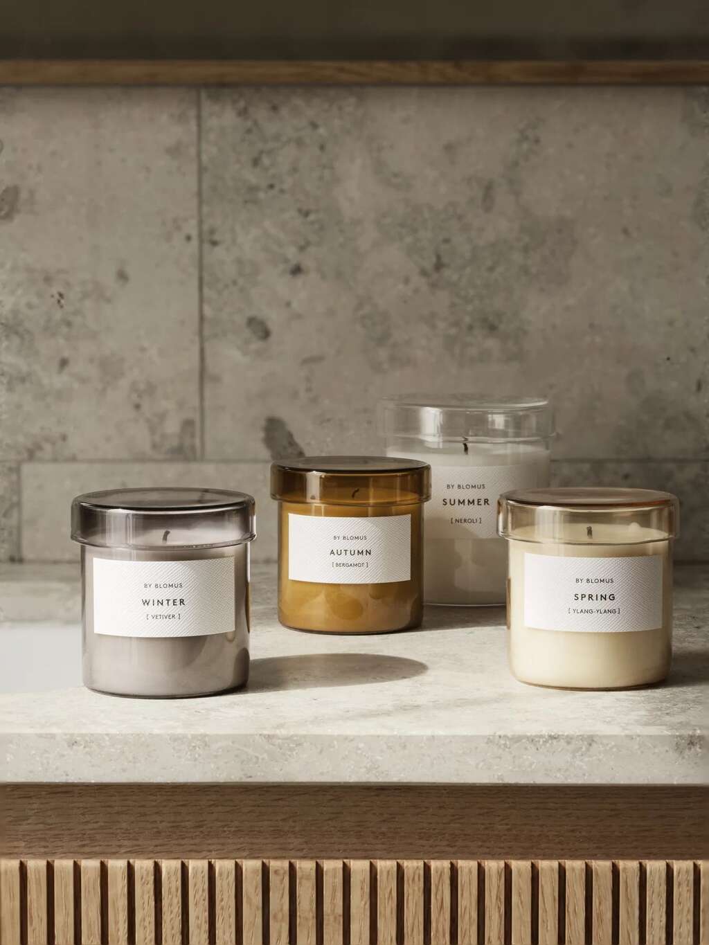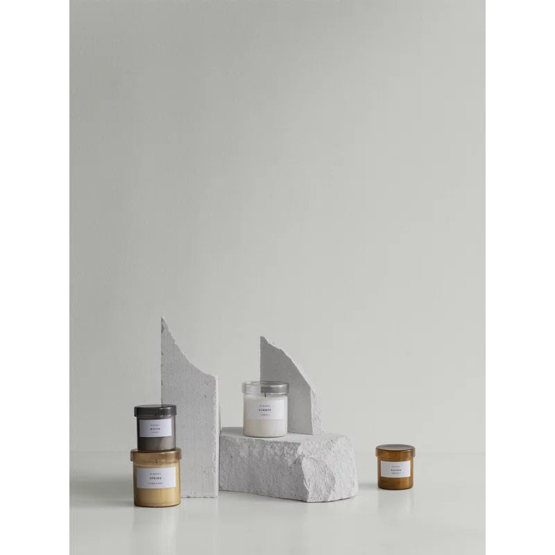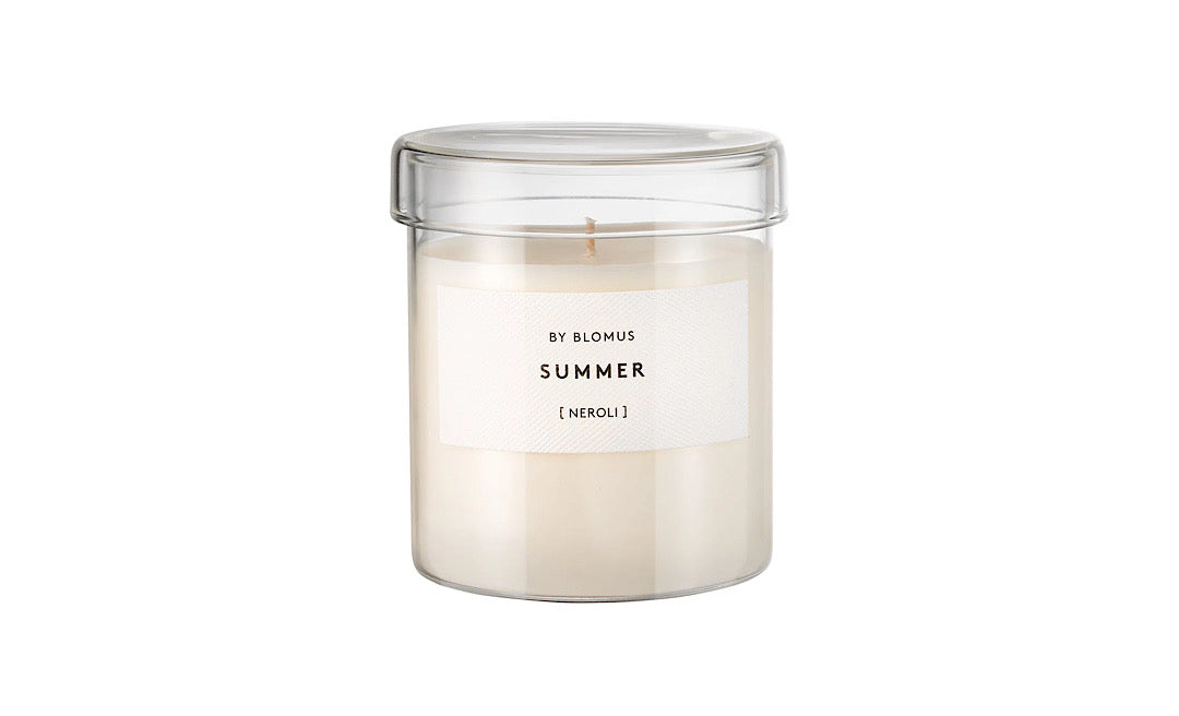 Blomus scented candle in a glass container features a unique fragrance in a beautifully colored glass container with aromatic notes from the natural world. VALOA fragrances awaken the senses and take us on a wonderful scented journey through the year. Select a candle reminiscent of your favorite season to change the mood of your space. All fragrances are refills making this a beautiful, sustainable product. The lid keeps fragrance from escaping when not in use and doubles as a tray when burning.