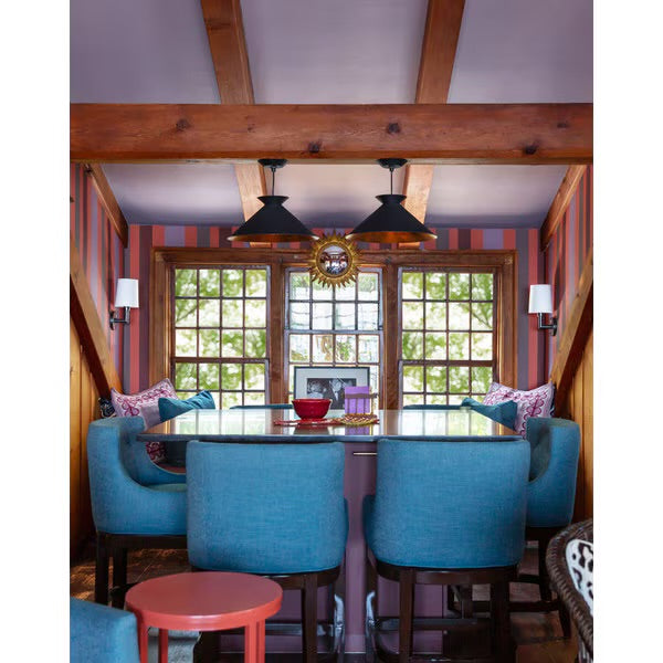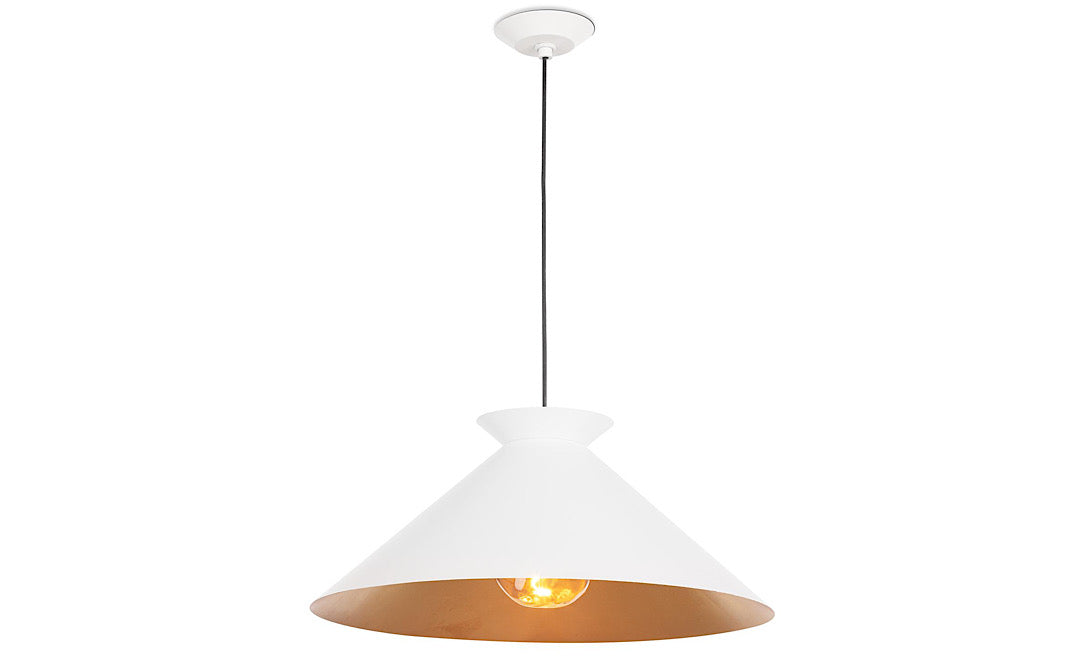 Experience the beauty of modern design with our Viggo Pendant. Its clean silhouette is complemented by a subtly textured metal finish. Featuring a gold-leafed shade interior, the Viggo gives the room a warm glow and a sophisticated pop of contrast.