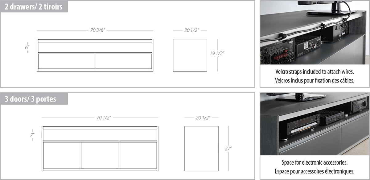 and bonded leathers. It is not available in leather. - 2 drawers with soft closing mechanism.