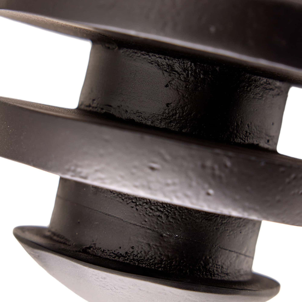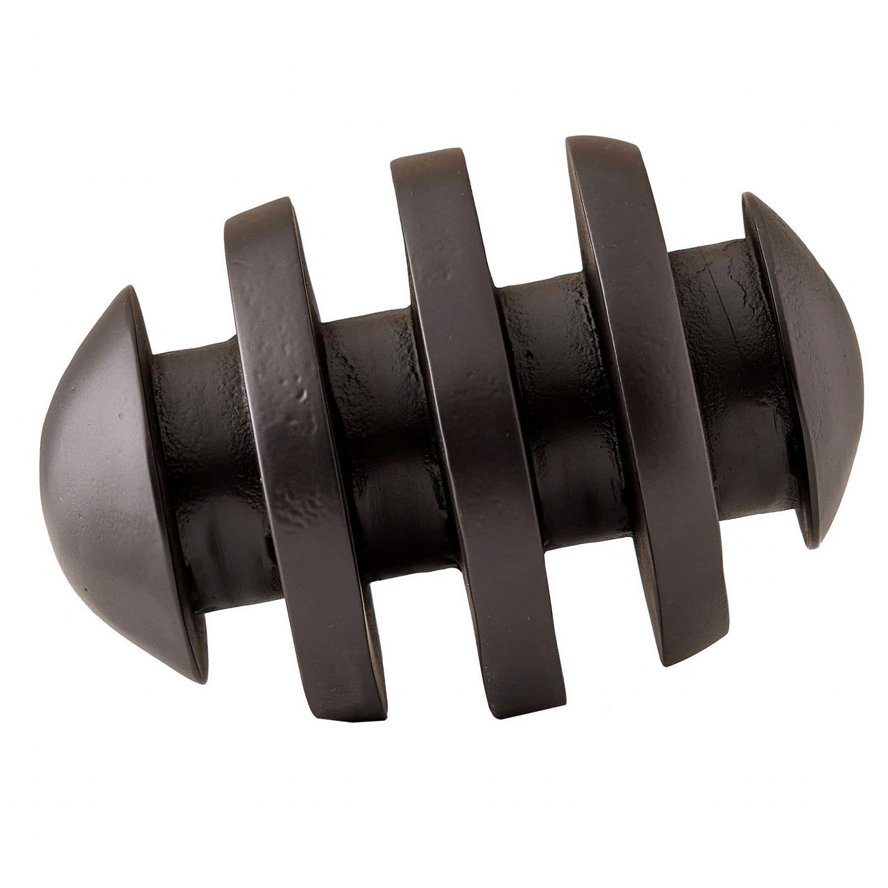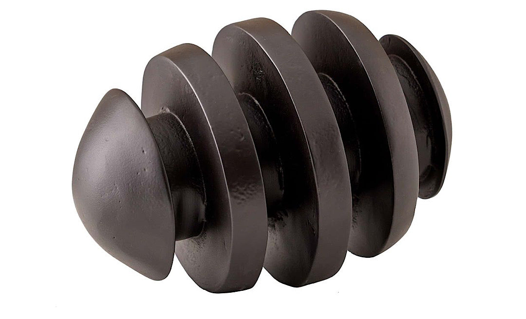 Cast bronzed aluminum forms the egg-shaped Volt sculpture. The sculpture’s notched design plays with positive and negative space and celebrates the beauty in simple geometry. Casting will vary.