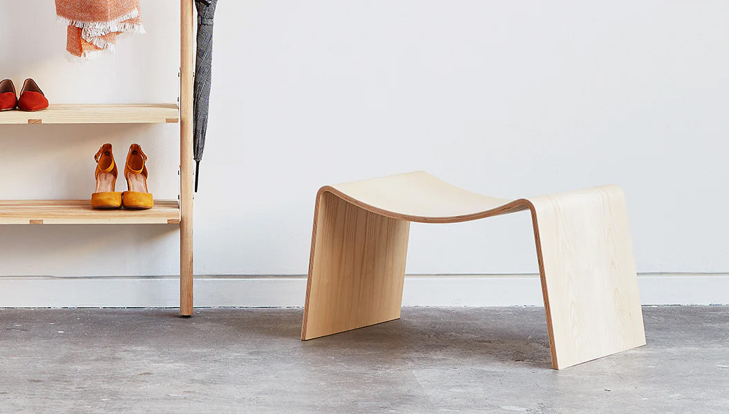 The Wave Stool smooth, flowing lines are an ode to the waters of Canada countless lakes and rivers. The cut edge reveals layers of exposed-ply, and the stool wide curve allows for a generous and accommodating seating area. Small-scaled and extremely versatile, the Wave Stool is perfect in living rooms, bedrooms or front hallways.