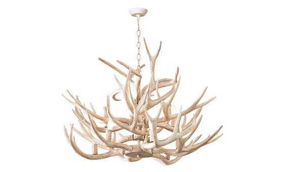 We've elevated the classically rustic antler chandelier, giving it an elegant upgrade. Waylon's multiple, sculptural antlers are a beautiful, natural bleached tone. Cream metal components give the chandelier a cohesive, neutral look. Bring the outdoors in by adding the dramatic Waylon Chandelier to your entryway, dining room or a vaulted ceiling.