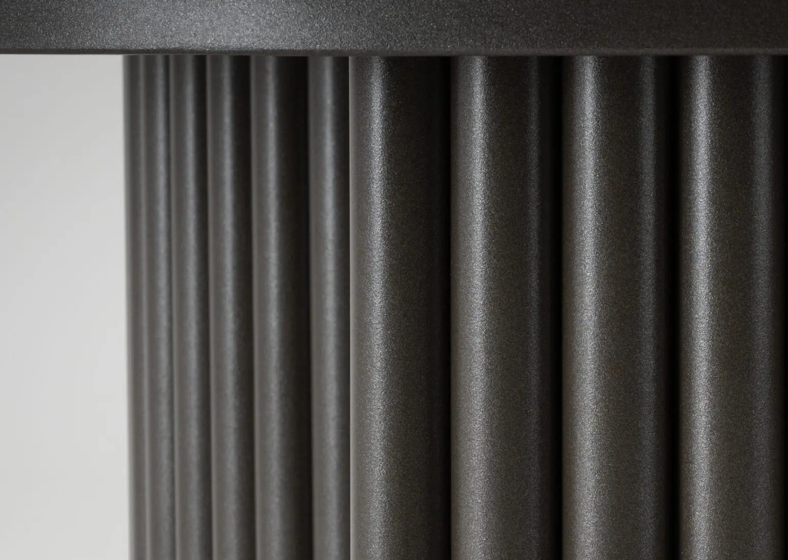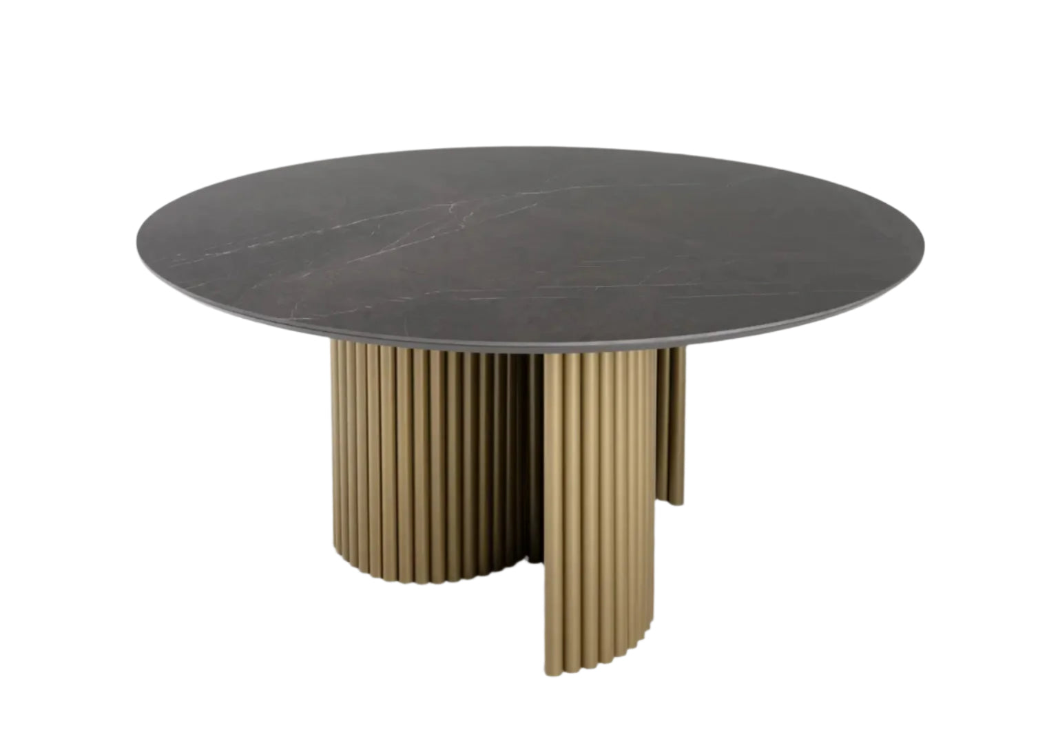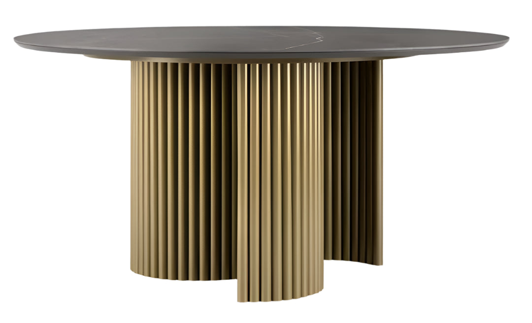 6 mm round porcelain top laminated on a lacquered MDF board.