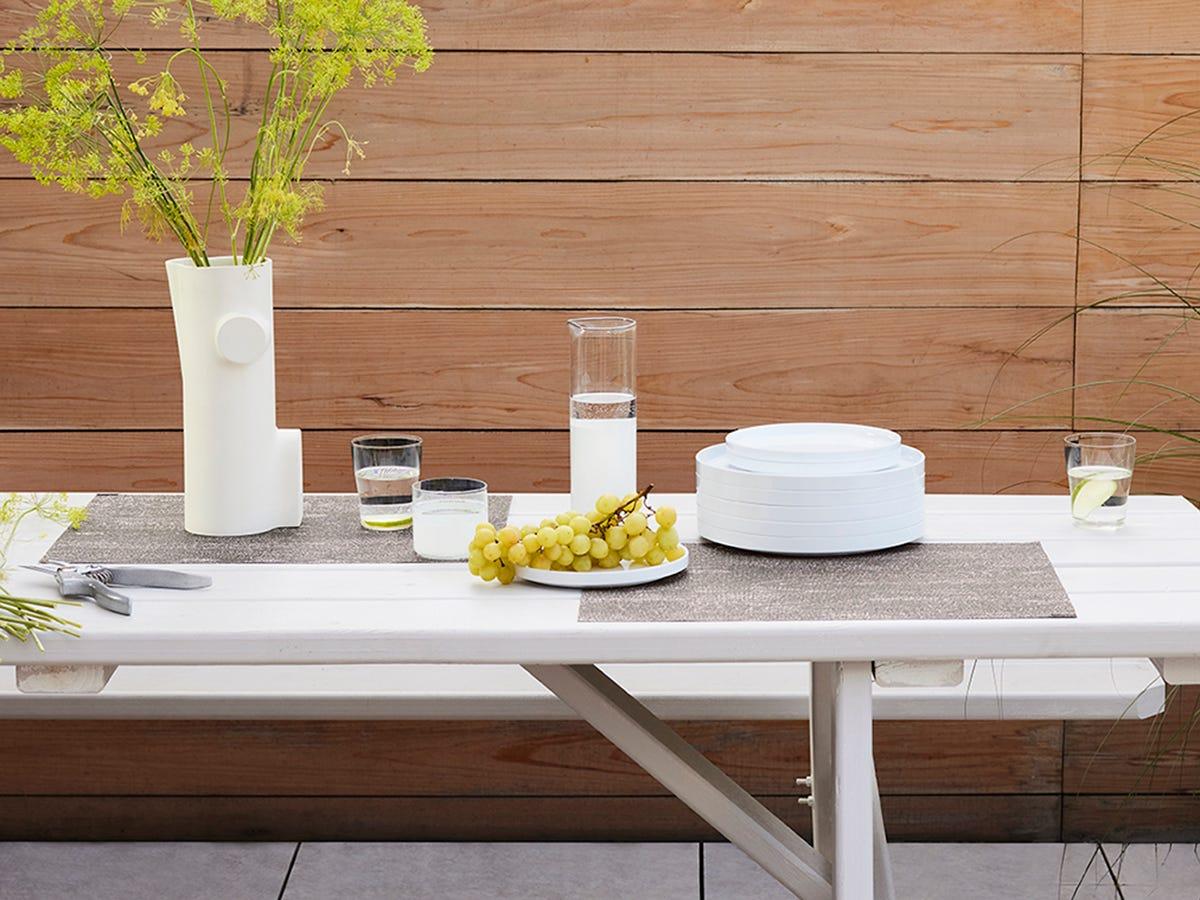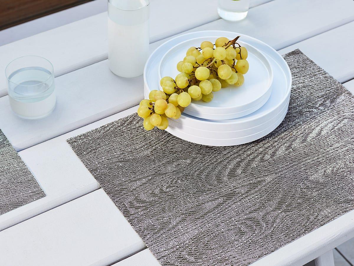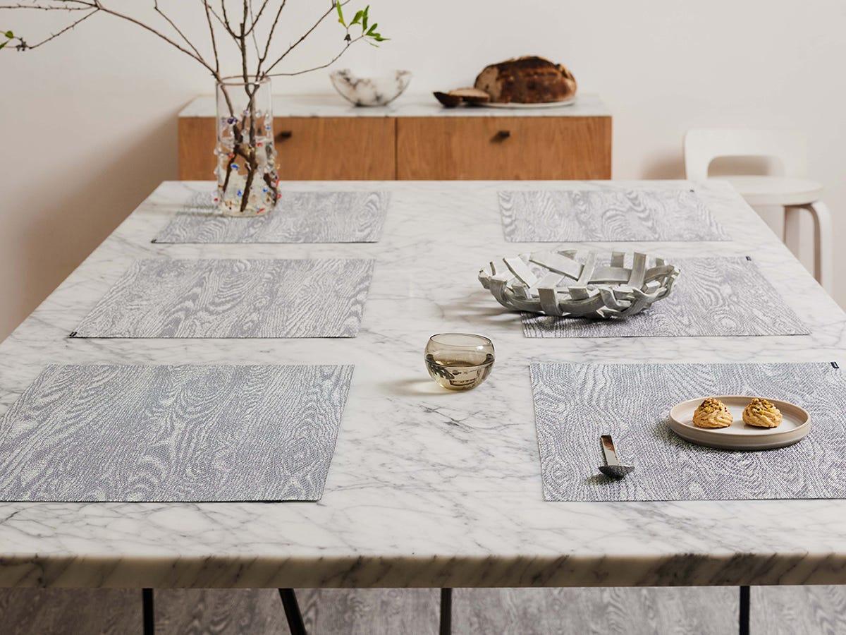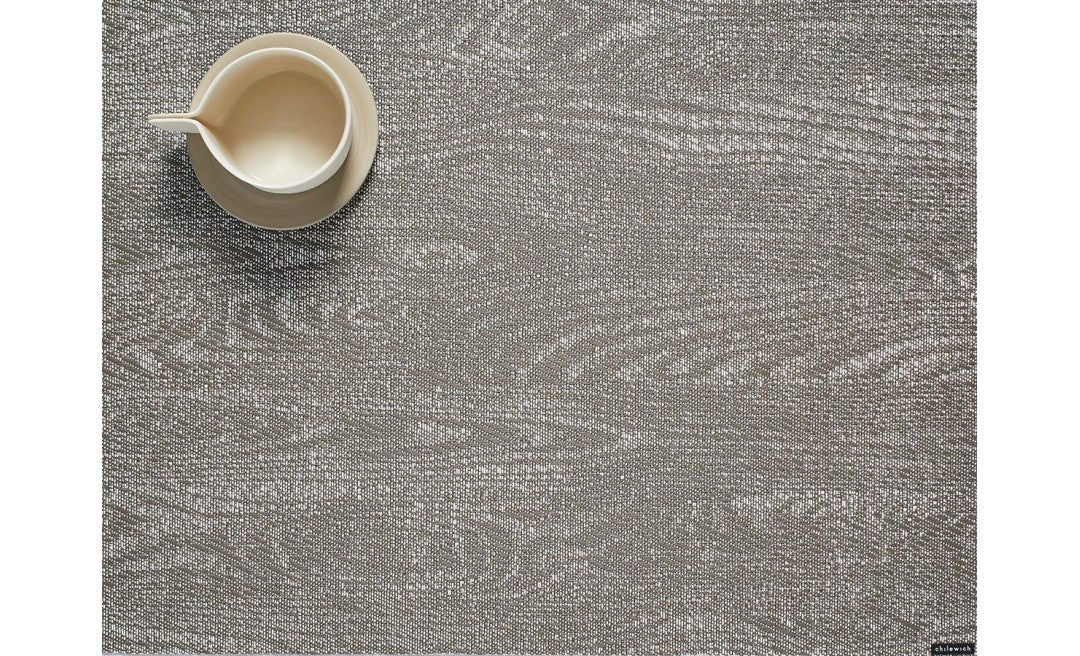 A new voice in Chilewich's ongoing conversation with faux bois—the centuries-old art and craft of imitating wood—Woodgrain gains its distinctive look from faithfully recreated patterns originally formed by the burls, knots, growth rings, and other natural variations that make each piece of wood unique. This weave was developed with a large, thoughtfully scaled repeat to enhance the continuity and organic quality of the tonal texture.