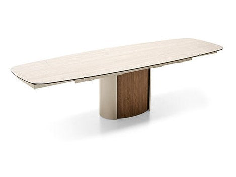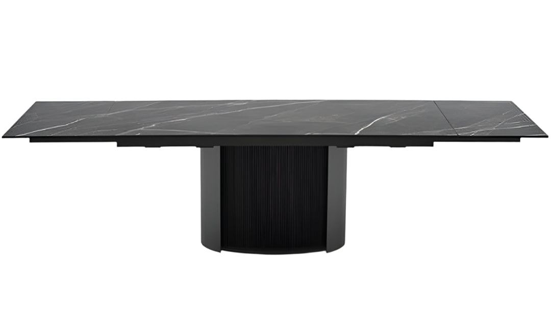 Yoroi, the modern extendable dining table inspired by the ancient armour of the samurai. Its central base, adorned with vertical grooves and optional wooden inserts, exudes strength and character, beautifully contrasting the simple elegance of the extendable rectangular top. With its unique design and carefully selected finishes, Yoroi masterfully balances a rich historical essence with a contemporary flair, creating a captivating focal point for any dining space.