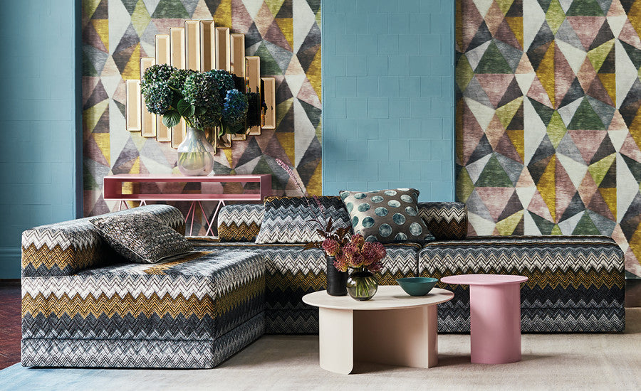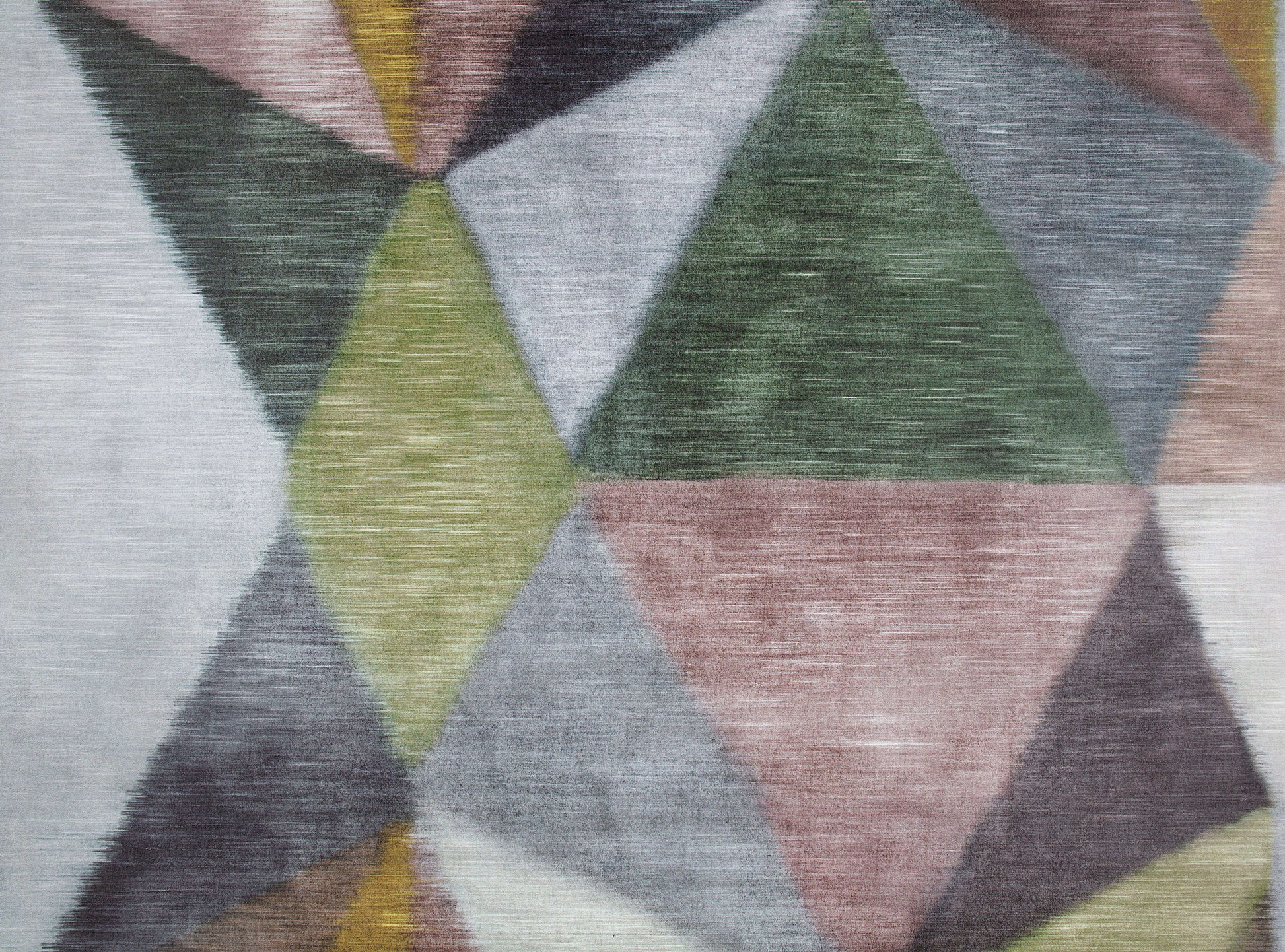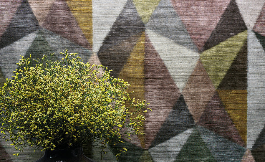 Wonderfully bold, this striking wallcovering features a colourful, contemporary diamond design with soft, diffused edges. A fine, textural emboss replicates the appearance of delicately woven silk, enhancing the subtle horizontal movement of colour.